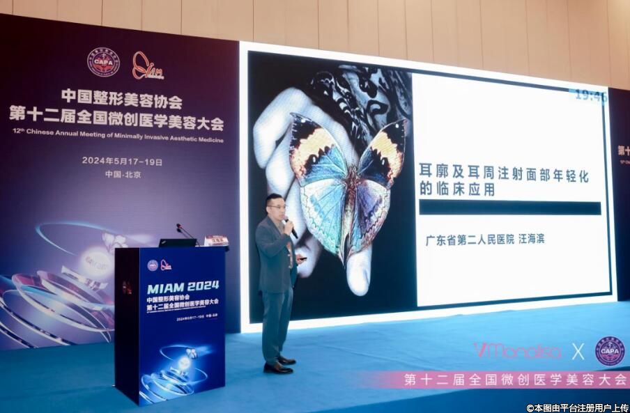 會(huì)上,汪海濱教授針對(duì)耳部美學(xué)、耳部解剖、并發(fā)癥管理,以及耳部注射年輕化四方面進(jìn)行了《耳廓及耳周注射面部年輕化的臨床應(yīng)用》課題分享。