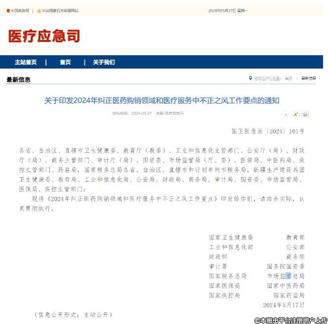 現(xiàn)將《2024年糾正醫(yī)藥購(gòu)銷領(lǐng)域和醫(yī)療服務(wù)中不正之風(fēng)工作要點(diǎn)》印發(fā)給你們,請(qǐng)結(jié)合實(shí)際,認(rèn)真貫徹執(zhí)行。