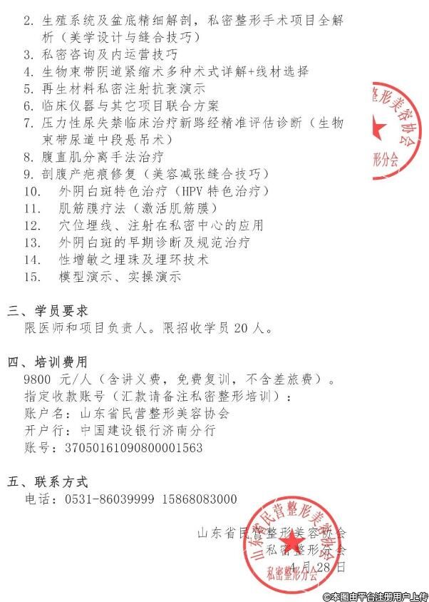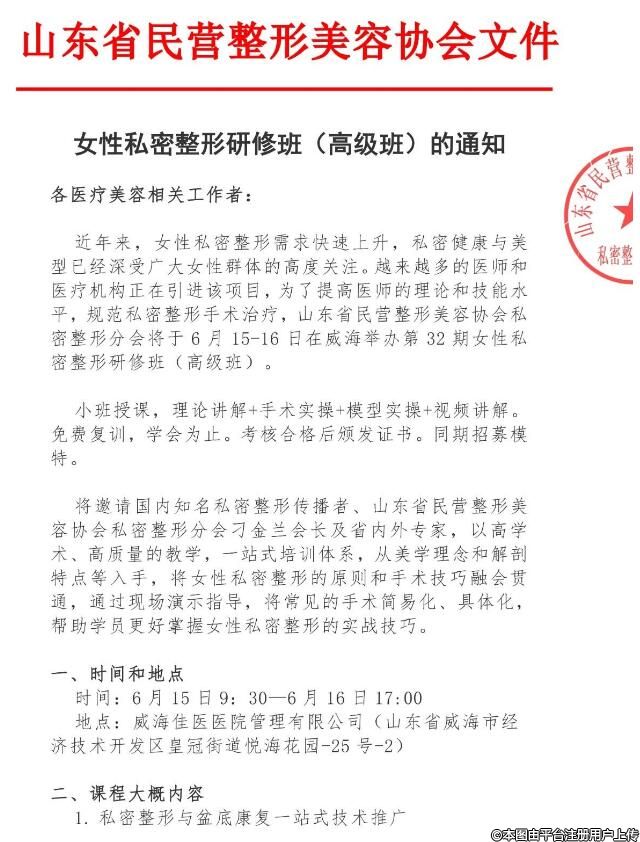 6月15-16日第32期女性私密整形研修班(高級(jí)班)的通知