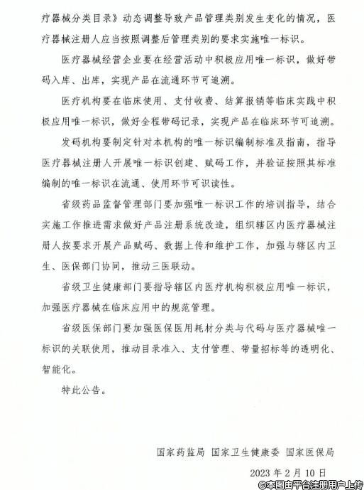 關(guān)于做好第三批實(shí)施醫(yī)療器械唯一標(biāo)識(shí)工作的公告