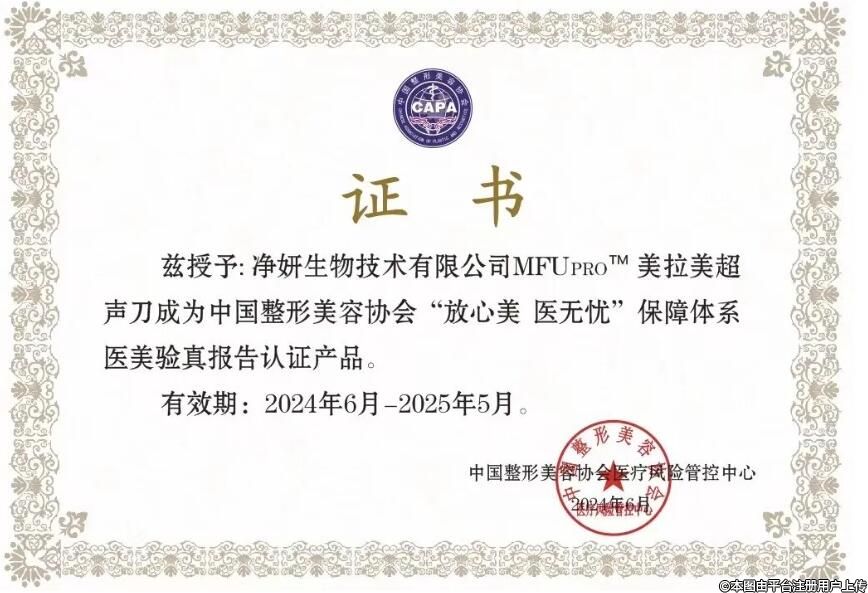 凈妍生物MFUpro美拉美超聲刀成為中國整形美容協(xié)會“放心美·醫(yī)無憂”保障體系醫(yī)美驗真報告認證產(chǎn)品。標志著MFUpro美拉美超聲刀在保障消費者權(quán)益、推動行業(yè)誠信建設(shè)方面邁著堅實步履。這不僅是對產(chǎn)品的高度肯定,更是對整個行業(yè)發(fā)出的積極信號;只有將誠信與質(zhì)量放在首位,才能贏得市場的長久信賴,共同推動醫(yī)美行業(yè)的可持續(xù)發(fā)展。
