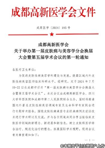 為促進(jìn)皮膚性病美容學(xué)科建設(shè)與發(fā)展,提高區(qū)域內(nèi)外皮膚性病美容醫(yī)師臨床科研水平,經(jīng)研究,定于2024年7月19日-22日在成都市召開(kāi)“第一屆皮膚病與美容學(xué)分會(huì)換屆大會(huì)暨第五屆學(xué)術(shù)會(huì)議”。