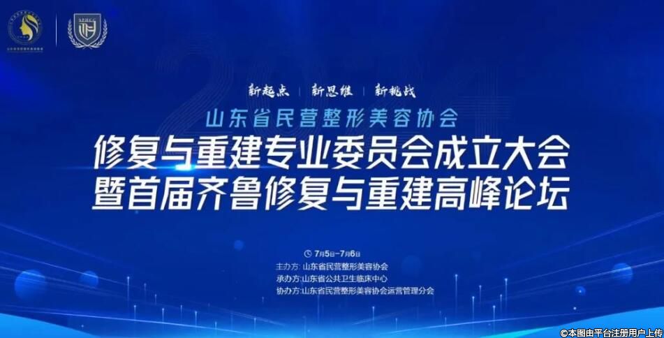 7月5-6日,山東省民營(yíng)整形美容協(xié)會(huì)修復(fù)與重建專業(yè)委員會(huì)成立大會(huì)暨首屆齊魯修復(fù)與重建高峰論壇在濟(jì)南成功舉辦。本次會(huì)議的成功舉辦,得到了山東大學(xué)附屬公共衛(wèi)生臨床中心、山東省民營(yíng)整形美容協(xié)會(huì)運(yùn)營(yíng)管理分會(huì)、濟(jì)南深邁科技有限公司、深圳齊康醫(yī)療器械有限公司、穩(wěn)得希林(杭州)生物科技有限公司、山東慈德醫(yī)藥有限公司、濟(jì)南護(hù)理職業(yè)學(xué)院、濟(jì)南槐蔭俏嘉麗醫(yī)療美容門診部等單位的支持。