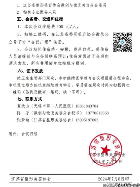 為發(fā)揮江蘇省整形美容協(xié)會微創(chuàng)與激光美容分會的引領(lǐng)作用,推動我省醫(yī)療美容皮膚與激光美容事業(yè)的發(fā)展,經(jīng)協(xié)會研究,由江蘇省整形美容協(xié)會主辦、無錫市第二人民醫(yī)院承辦的 2024年學(xué)術(shù)年會暨省級繼教項目(項目編號:20240712000005)定于2024年7月27-28日在無錫召開?,F(xiàn)將會議有關(guān)事宜通知如下: