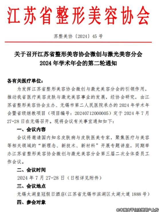 關(guān)于召開江蘇省整形美容協(xié)會微創(chuàng)與激光美容分會2024年學(xué)術(shù)年會