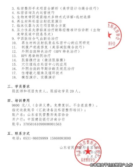 8月22-23日第34期女性私密整形研修班(高級班)的通知