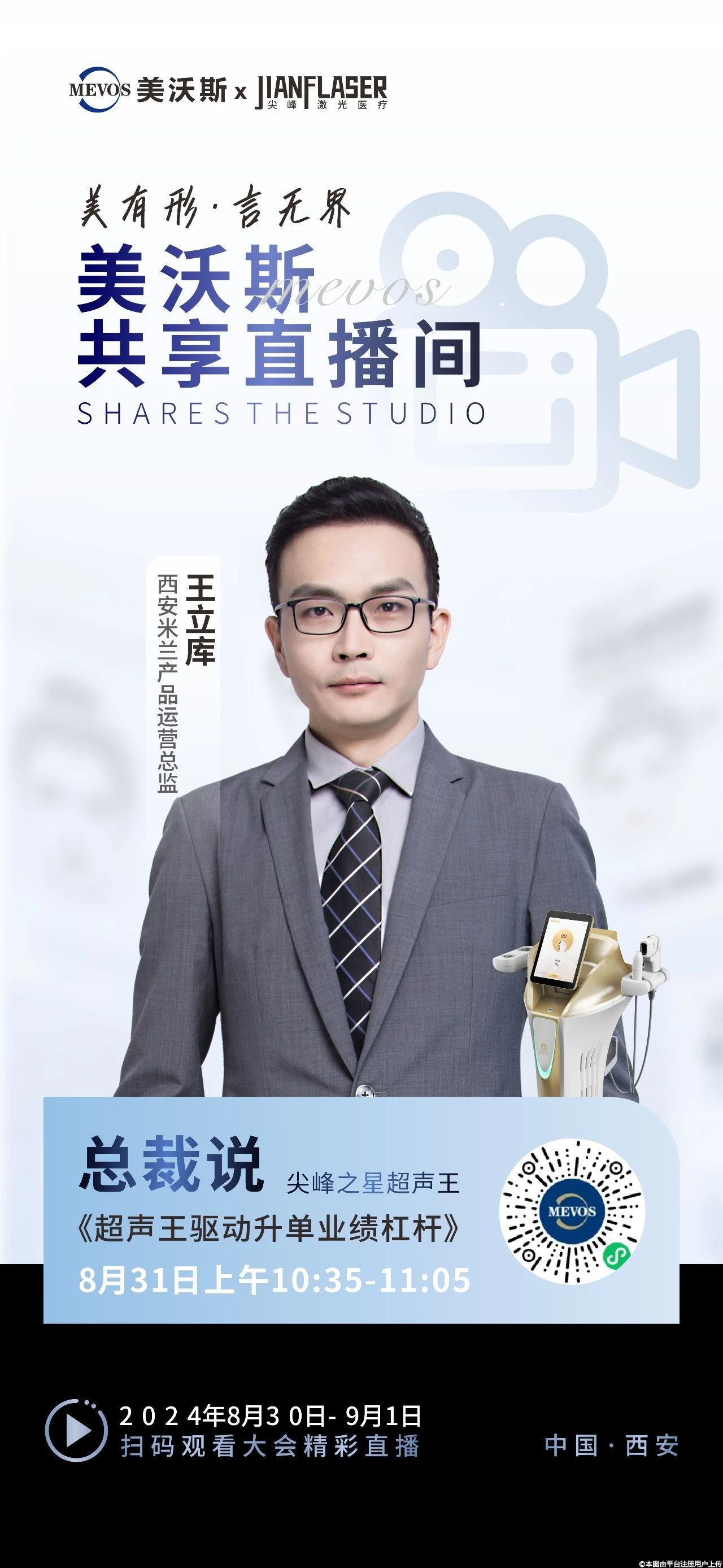 8月31日上午10:35-11:05,美沃斯官方共享直播間《總裁說》欄目攜手尖峰醫(yī)療舉行直播訪談,特邀西安米蘭產(chǎn)品運營總監(jiān)王立庫先生結(jié)合實戰(zhàn)運營案例,面對面拆解《超聲王驅(qū)動升單業(yè)績杠桿》的密碼,并將與觀眾朋友在直播間進(jìn)行精彩互動~