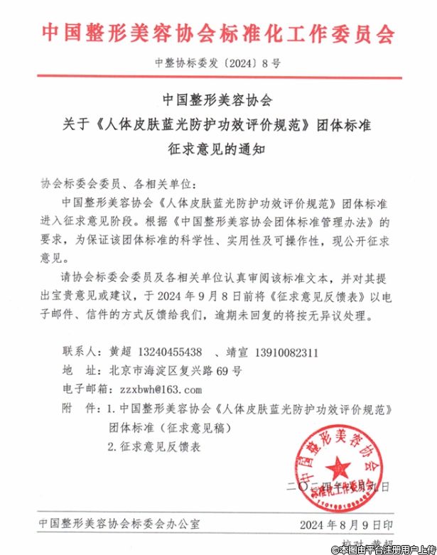 中國整形美容協(xié)會《人體皮膚藍光防護功效評價規(guī)范》團體標準進入征求意見階段。根據(jù)《中國整形美容協(xié)會團體標準管理辦法》的要求,為保證該團體標準的科學性、實用性及可操作性,現(xiàn)公開征求意見。