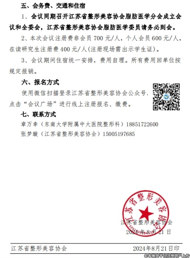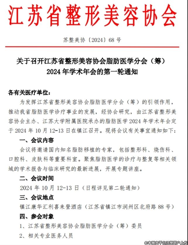 關(guān)于召開江蘇省整形美容協(xié)會脂肪醫(yī)學分會(籌)2024年學術(shù)年會的第一輪通知