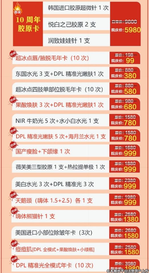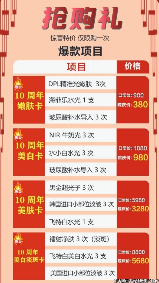 4、特價(jià)項(xiàng)目/已核銷(xiāo)概不退款,周年慶活動(dòng)不與院內(nèi)其他活動(dòng)同時(shí)享受;
