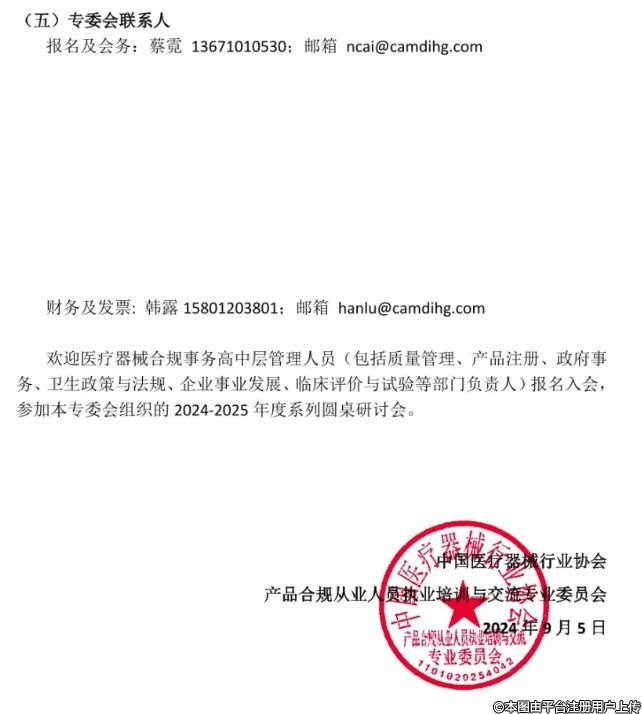 歡迎醫(yī)療器械合規(guī)事務(wù)高中層管理人員(包括質(zhì)量管理、產(chǎn)品注冊、政府事務(wù)、衛(wèi)生政策與法規(guī)、企業(yè)事業(yè)發(fā)展、臨床評價與試驗等部門負(fù)責(zé)人)報名入會參加本專委會組織的 2024-2025 年度系列圓桌研討會。