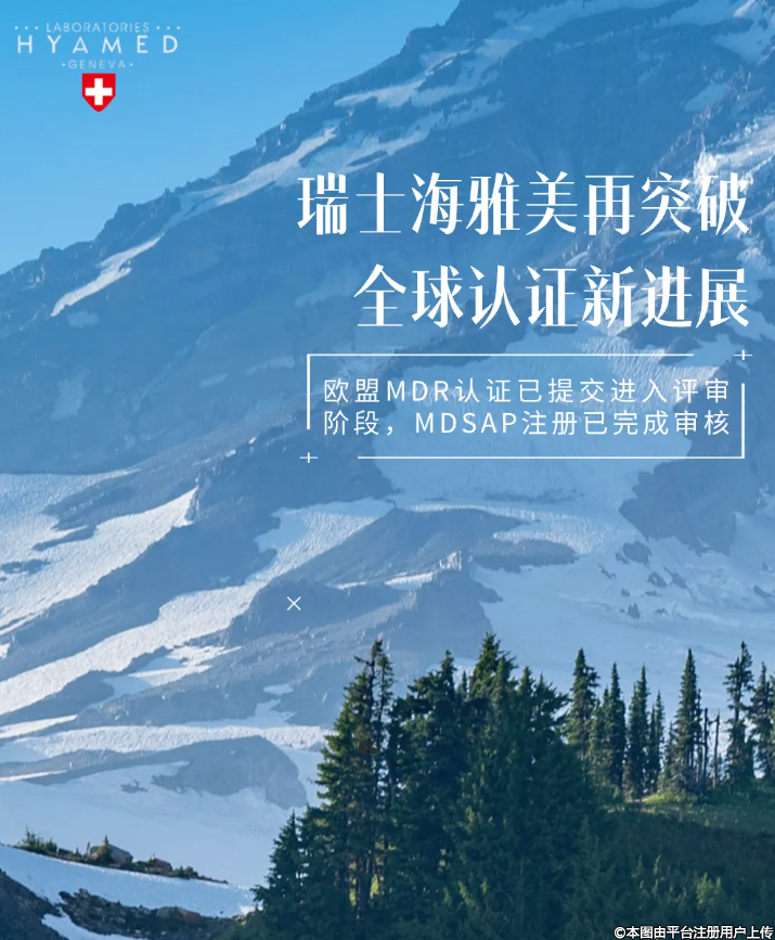 作為瑞士頭部醫(yī)學(xué)美容企業(yè),瑞士海雅美實驗室(Laboratories Hyamed SA)為推動旗下產(chǎn)品向更專業(yè)安全的方向發(fā)展,全球注冊取得重大進展:歐盟MDR認(rèn)證已提交進入評審階段,MDSAP注冊已完成審核。