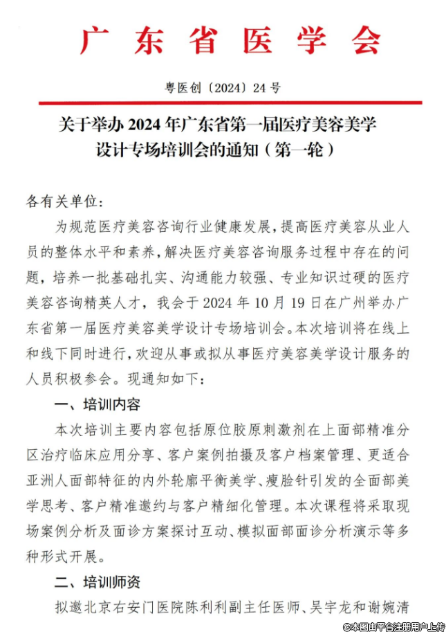 廣東省醫(yī)學會關(guān)于舉辦第一屆醫(yī)療美容美學設(shè)計專場培訓會的通知