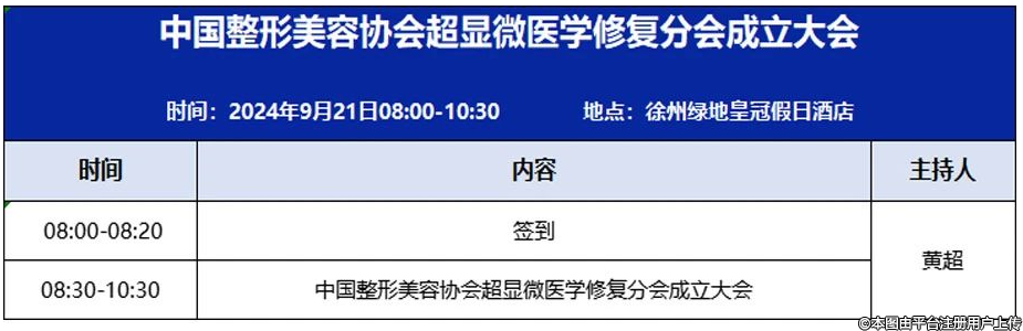 9月20-21日,中國整形美容協(xié)會超顯微醫(yī)學(xué)修復(fù)分會成立大會暨第一屆超級顯微醫(yī)學(xué)修復(fù)學(xué)術(shù)交流會即將召開