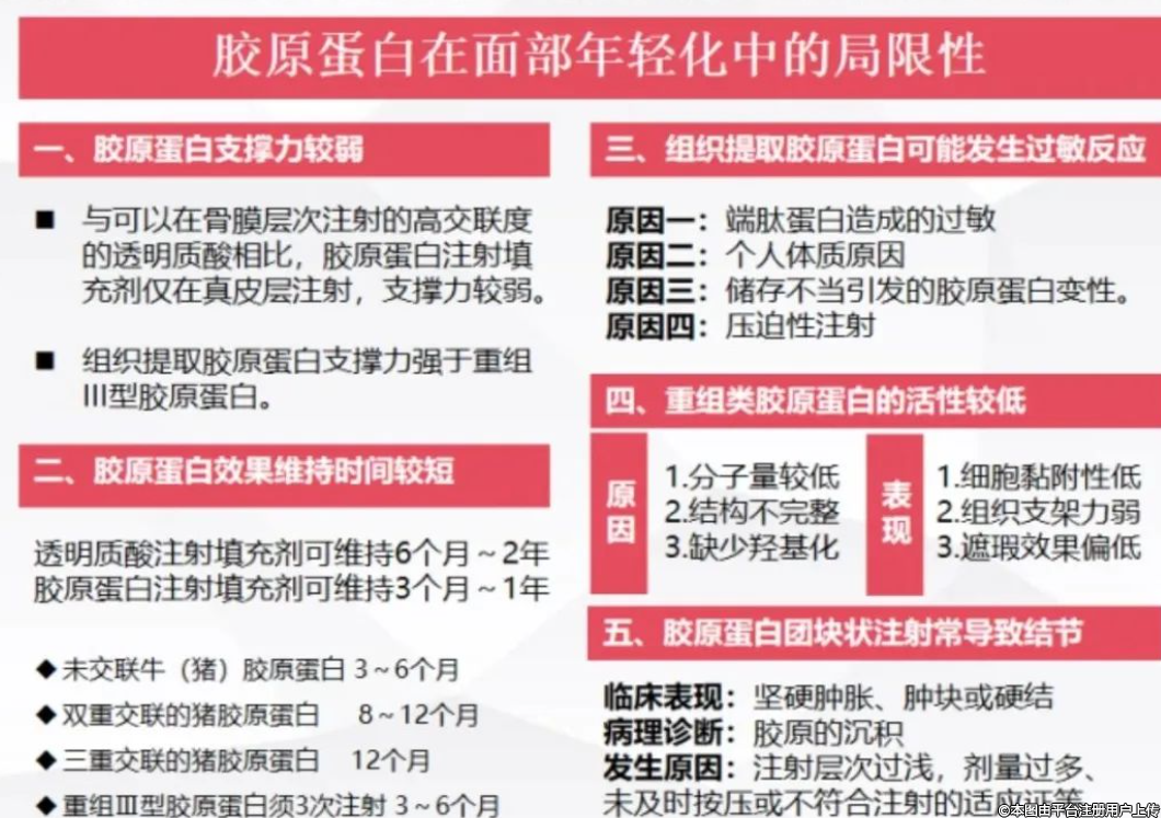 沒有材料是全能的,膠原蛋白注射填充劑的應(yīng)用過程中也出現(xiàn)了一些問題,今天來聊一聊膠原蛋白在面部年輕化中的局限性,下面將從5個方面和大家展開分享。
