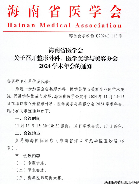海南省醫(yī)學(xué)會(huì)關(guān)于召開(kāi)整形外科、醫(yī)學(xué)美學(xué)與美容分會(huì)2024學(xué)術(shù)年會(huì)的通知
