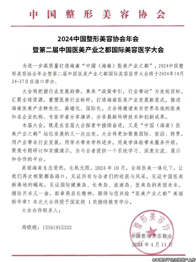 為進(jìn)一步高質(zhì)量打造海南“中國(海南)醫(yī)美產(chǎn)業(yè)之都”,2024中國整形美容協(xié)會年會暨第二屆中國醫(yī)美產(chǎn)業(yè)之都國際美容醫(yī)學(xué)大會將于2024年10月24-27日在海口舉辦。