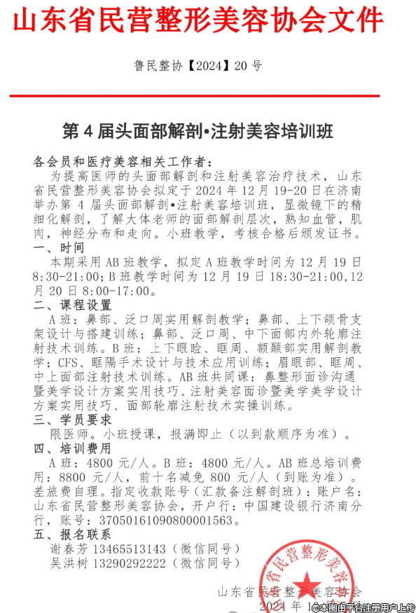 第4屆頭面部解剖•注射美容培訓(xùn)班的通知