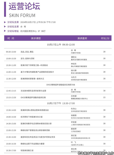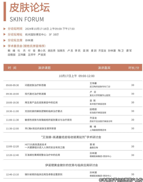 本次大會將分為面部年輕化主會場、激光皮膚會場、運營新媒體會場等多個精彩板塊。全面覆蓋產(chǎn)學研,集學術(shù)技術(shù)、藝術(shù)管理、時尚文化于一身,在這里有來自美國、歐洲、日本、韓國、中國臺灣等世界各地的眾多行業(yè)精英及供應(yīng)商的積極參與,分享來自醫(yī)美精英的智慧與經(jīng)驗,相互交流、學習、合作。