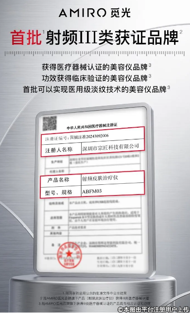 AMIRO覓光®在組作為公司旗下精準(zhǔn)護(hù)膚品牌,2022年,成立射頻產(chǎn)品醫(yī)療項(xiàng)目組,9月提交注冊(cè)檢驗(yàn),并于年底取得了射頻美容儀合格合規(guī)的注冊(cè)檢驗(yàn)報(bào)告,同期在多家三甲醫(yī)院制定醫(yī)療器械臨床試驗(yàn)方案;2023年,在多家三甲醫(yī)院?jiǎn)?dòng)覓光深層射頻儀和覓光膠原炮兩款射頻產(chǎn)品的臨床試驗(yàn)。