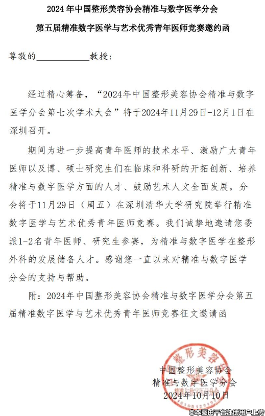 2024年中國整形美容協(xié)會精準與數(shù)字醫(yī)學分會第五屆精準數(shù)字醫(yī)學與藝術優(yōu)秀青年醫(yī)師競賽邀約函
