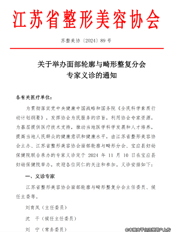 關(guān)于舉辦面部輪廓與畸形整復(fù)分會(huì)專家義診的通知