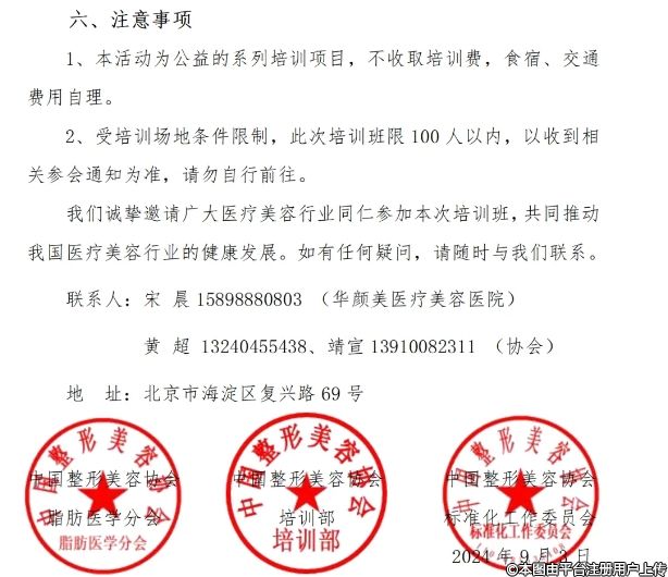 2、受培訓(xùn)場(chǎng)地條件限制,此次培訓(xùn)班限100人以內(nèi),以收到相關(guān)參會(huì)通知為準(zhǔn),請(qǐng)勿自行前往。我們誠(chéng)摯邀請(qǐng)廣大醫(yī)療美容行業(yè)同仁參加本次培訓(xùn)班,共同推動(dòng)我國(guó)醫(yī)療美容行業(yè)的健康發(fā)展。如有任何疑問(wèn),請(qǐng)隨時(shí)與我們聯(lián)系。