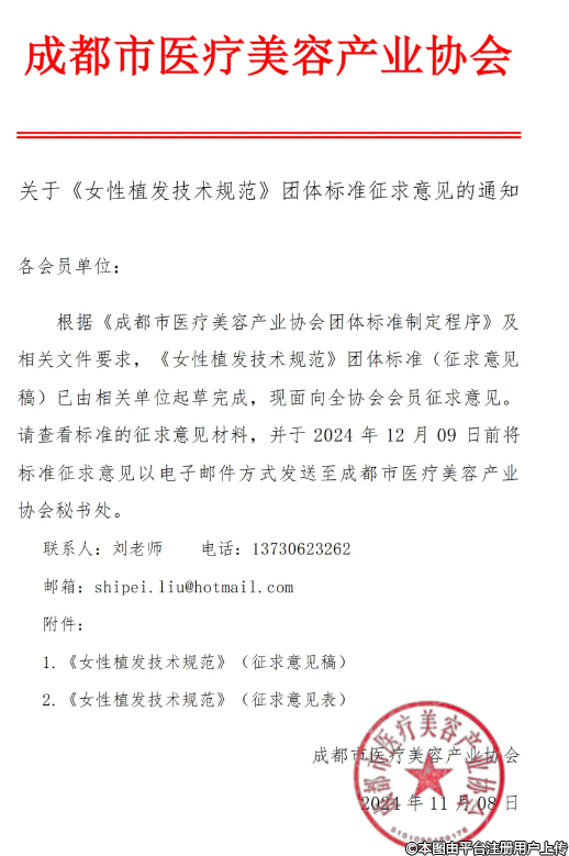 團(tuán)體標(biāo)準(zhǔn) | 成都市醫(yī)療美容產(chǎn)業(yè)協(xié)會(huì)就《女性植發(fā)技術(shù)規(guī)范》團(tuán)體標(biāo)準(zhǔn)公開(kāi)征求意見(jiàn)