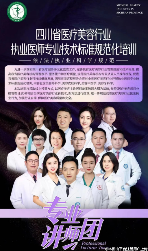 為進(jìn)一步落實(shí)四川省醫(yī)療服務(wù)多元化監(jiān)管工作,完善我省醫(yī)療美容行業(yè)管理規(guī)范和技術(shù)標(biāo)準(zhǔn),提高我省醫(yī)療美容機(jī)構(gòu)管理水平、服務(wù)能力和醫(yī)療質(zhì)量,規(guī)范醫(yī)療美容機(jī)構(gòu)專業(yè)從業(yè)人員操作流程,促進(jìn)我省醫(yī)療美容行業(yè)可持續(xù)健康發(fā)展,四川省美容整形協(xié)會(huì)將對(duì)全省醫(yī)療美容行業(yè)開(kāi)展執(zhí)業(yè)醫(yī)師專業(yè)技術(shù)標(biāo)準(zhǔn)規(guī)范化培訓(xùn),內(nèi)容包含美容外科學(xué)、美容皮膚科學(xué)、美容中醫(yī)學(xué)、美容牙科學(xué)。