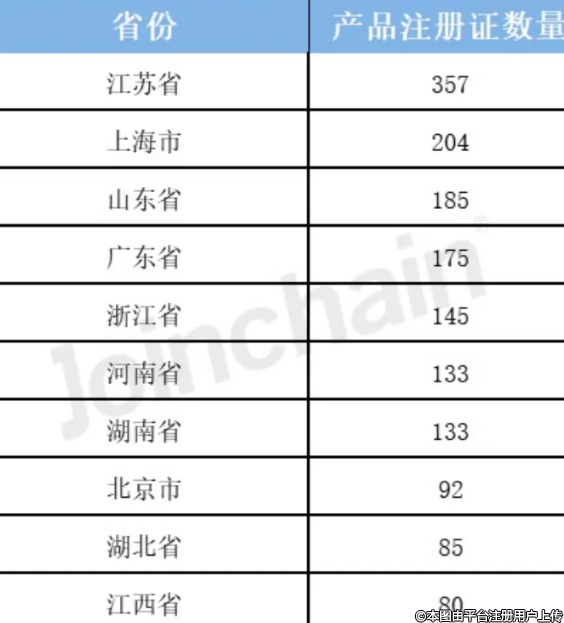 江蘇的醫(yī)美上游企業(yè)數(shù)量遠超其他省市,有357家。同時,我們還有一個疑問,為什么打出“醫(yī)美之都”旗號的四川(成都)、廣東(深圳)排名并不靠前?