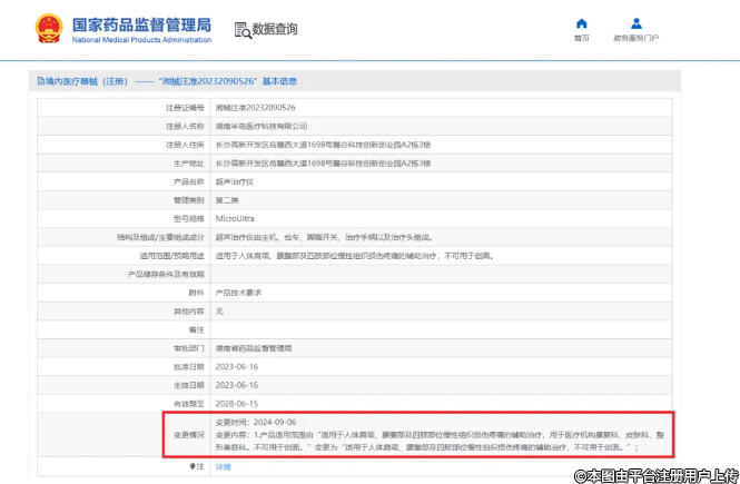國家藥品監(jiān)督管理局調(diào)整湖南7家超聲治療儀適用范圍