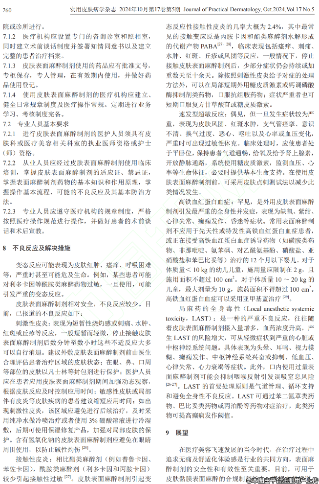 《皮膚表面麻醉制劑臨床應(yīng)用專家共識(shí)》對(duì)皮膚表面麻醉制劑的類型、技術(shù)、臨床應(yīng)用和注意事項(xiàng)進(jìn)行詳細(xì)闡述;并對(duì)有關(guān)表面麻醉制劑的用藥安全提出建議;在專家的集體智慧、嚴(yán)謹(jǐn)?shù)难C醫(yī)學(xué)證據(jù)支持下,對(duì)表面麻醉制劑不良反應(yīng)給出了更為明確的分類定義以及應(yīng)對(duì)指導(dǎo),幫助醫(yī)美行業(yè)表面麻醉制劑的臨床應(yīng)用更加科學(xué)與規(guī)范。
