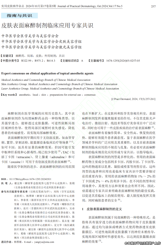 中國(guó)首篇《皮膚表面麻醉制劑臨床應(yīng)用專家共識(shí)》正式刊發(fā),護(hù)航醫(yī)美表麻用藥規(guī)范