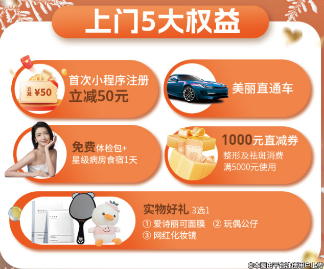 ?、垲A(yù)約禮:網(wǎng)絡(luò)新客預(yù)約,整形祛斑項(xiàng)目立減1000元(滿 5000可用)