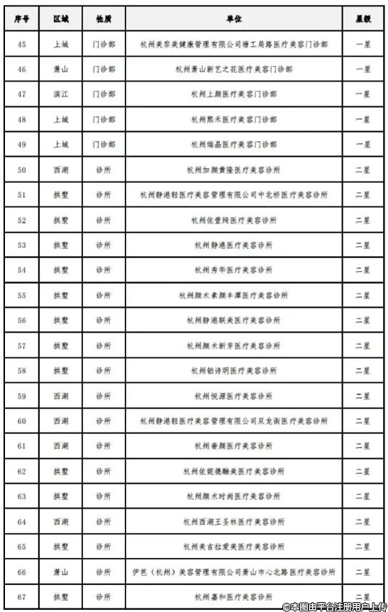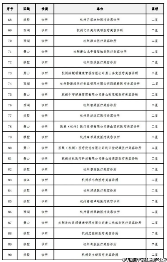 附件:《杭州市醫(yī)療美容機(jī)構(gòu)規(guī)范化星級(jí)評(píng)價(jià)結(jié)果》