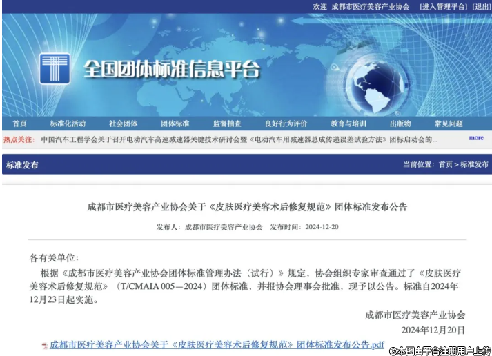 團體標準 | 《皮膚醫(yī)療美容術(shù)后修復規(guī)范》團體標準發(fā)布公告