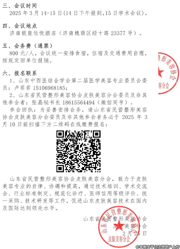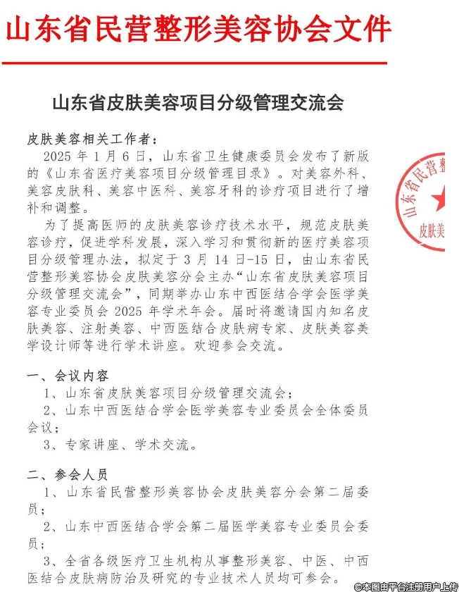 邀請函丨山東省皮膚美容項目分級管理交流會暨山東中西醫(yī)結合學會醫(yī)學美容專業(yè)委員會2025年學術年會