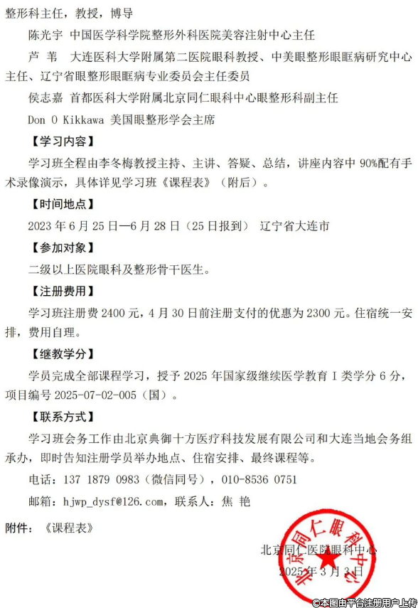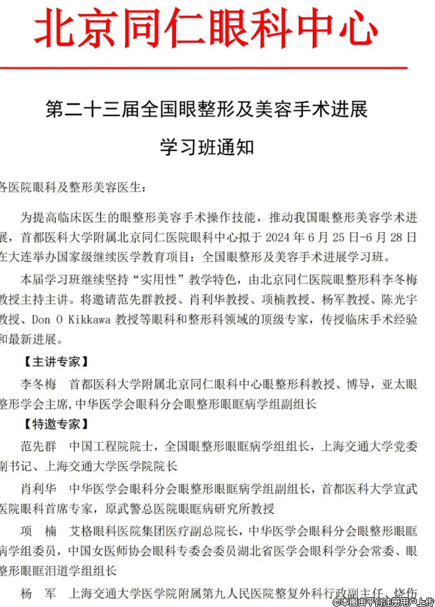 第二十三屆全國(guó)眼整形及美容手術(shù)進(jìn)展 學(xué)習(xí)班通知(附課程表)