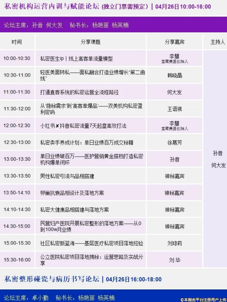 大會設(shè)立10大板塊24個分論壇,以視頻講解和案例演示的形式展開。從私密整形技術(shù)、操作視頻、接診查體、咨詢運營、最新獲客等方面開設(shè)系列私密整形論壇,為轉(zhuǎn)型私密生殖整形提供了系統(tǒng)化學(xué)習。大會匯集了權(quán)威私密整形專家、注射美容專家、激光美容專家展開變美與安全的研討。AI醫(yī)學(xué)辯論會,AI數(shù)字醫(yī)生大屏問診互動,AI自動獲客作為大會3大亮點,引領(lǐng)與會人員抓住AI數(shù)字轉(zhuǎn)型先機。