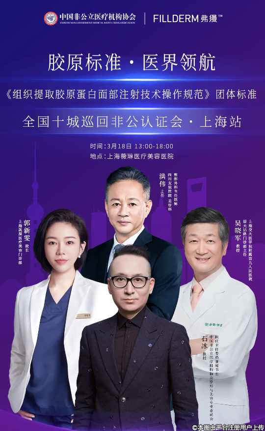 在中國非公立醫(yī)療機(jī)構(gòu)協(xié)會整形與美容專業(yè)委員會的指導(dǎo)下,《組織提取膠原蛋白面部注射操作規(guī)范》團(tuán)體標(biāo)準(zhǔn)全國十城巡講活動將于2025年3月18日在上海啟動。斐縵生物積極協(xié)助活動落地,推進(jìn)提取膠原蛋白注射技術(shù)從“經(jīng)驗化”向“規(guī)范化”轉(zhuǎn)變。