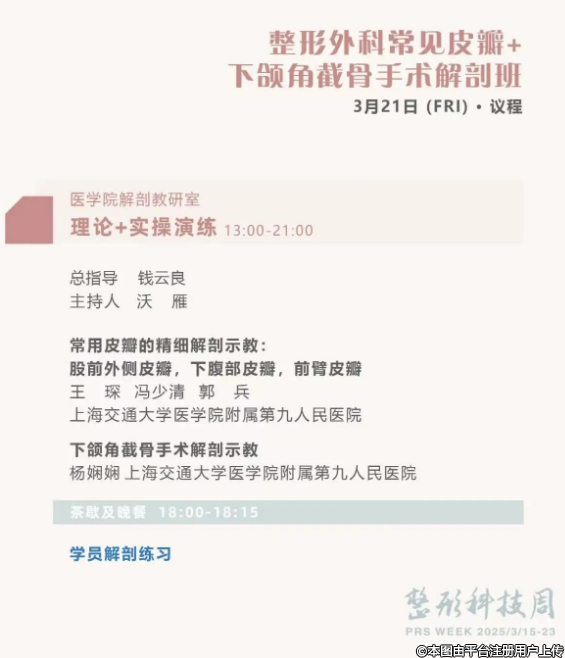 2025年3月20-21日,由上海張滌生整形外科發(fā)展基金會主辦、上海交通大學(xué)醫(yī)學(xué)院附屬第九人民醫(yī)院(以下簡稱”上海九院”)整復(fù)外科承辦的"2025整形科技周之解剖學(xué)習(xí)班”將在上海九院&上實(shí)醫(yī)美隆重舉行!