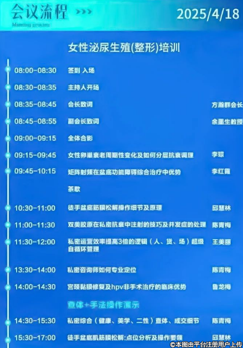本次會(huì)議針對(duì)女性泌尿生殖(私密)整形行業(yè)從業(yè)人員關(guān)于女性泌尿生殖(私密)的各類整形、微創(chuàng)、無創(chuàng)、咨詢、運(yùn)營等綜合能力培訓(xùn),以“愛與尊重”“專業(yè)與專注”,助力行業(yè)合規(guī)/專業(yè)/良性發(fā)展,以多年行業(yè)經(jīng)驗(yàn)沉淀,給予同行者從運(yùn)營到實(shí)戰(zhàn)的全方位賦能。