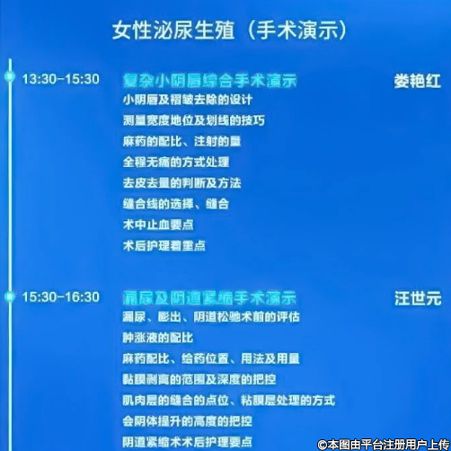 5、微創(chuàng)束帶在漏尿及陰道收緊操作的細(xì)節(jié)、層次、錨定點(diǎn)定位、束帶的固定處理、麻藥的配比、腫漲液的注射。