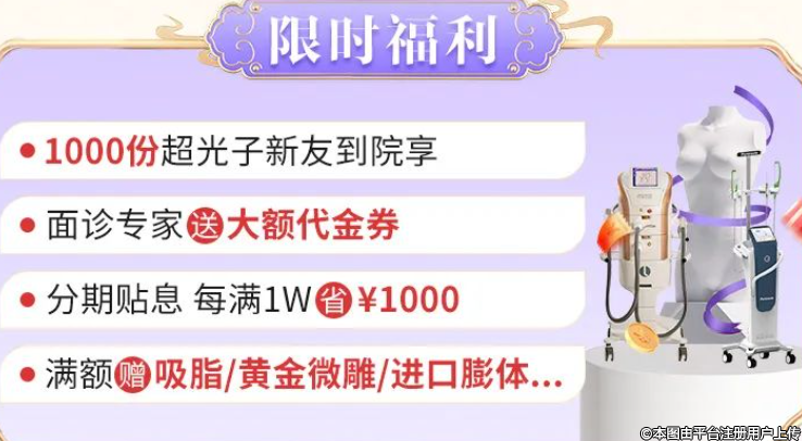 19-20日享限時(shí)福利新友上門(mén)送超光子嫩膚...面診送大額代金券,滿額送吸脂/黃金微雕。