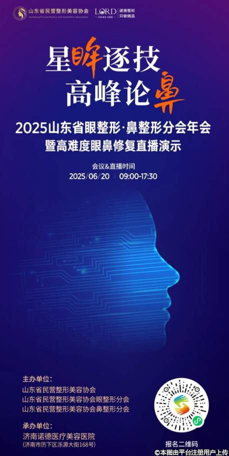 茲定于6月20日(周五)在濟(jì)南召開2025山東省眼整形、鼻整形分會年會暨高難度眼鼻修復(fù)直播演示。會議主題為星【眸】逐技·高峰論【鼻】。致力于眼、鼻整形學(xué)術(shù)專業(yè)交流,囊括眼周黃金美學(xué)審美交流、鼻部手術(shù)設(shè)計、眼鼻整形高難度手術(shù)修復(fù)實操演示等,致力于分享眼鼻整形新技術(shù)、新方法、新理念,加強(qiáng)行業(yè)內(nèi)的交流與合作,提高醫(yī)美從業(yè)者的專業(yè)水平,推動山東省醫(yī)美行業(yè)的健康發(fā)展。本次會議由山東省民營整形美容協(xié)會眼整形分會、山東省民營整形美容協(xié)會鼻整形分會主辦,濟(jì)南諾德醫(yī)療美容醫(yī)院承辦。