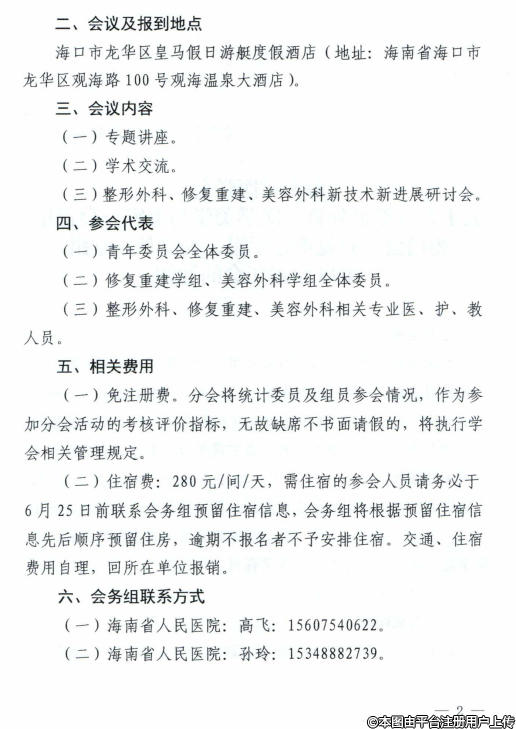 (二)住宿費:280元/間/天,需住宿的參會人員請務必于6月25日前聯(lián)系會務組預留住宿信息,會務組將根據(jù)預留住宿信息先后順序預留住房,逾期不報名者不予安排住宿。交通、住宿費用自理,回所在單位報銷。