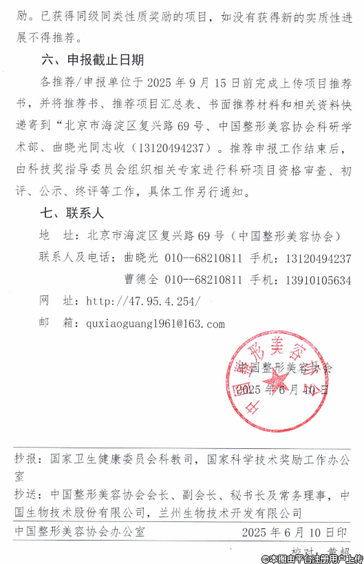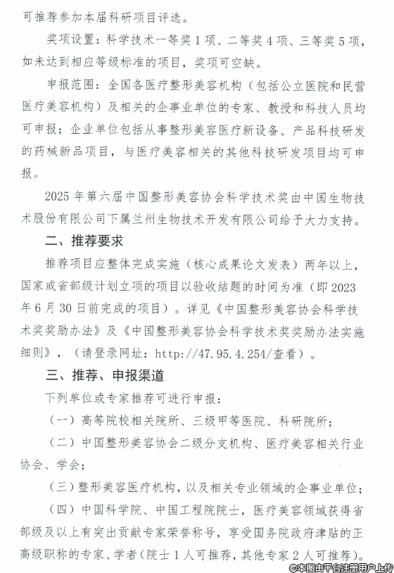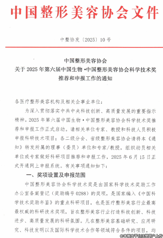 第六屆中國(guó)生物·中國(guó)整形美容協(xié)會(huì)科學(xué)技術(shù)獎(jiǎng)推薦和申報(bào)開始啦