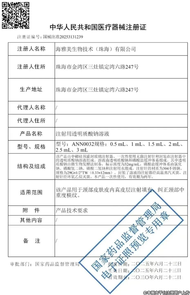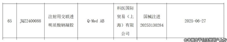 6月27日,高德美旗下注射用交聯(lián)透明質(zhì)酸鈉凝膠獲得國家藥監(jiān)局批準(zhǔn)注冊(cè),注冊(cè)證號(hào)為國械注進(jìn)20253130284。