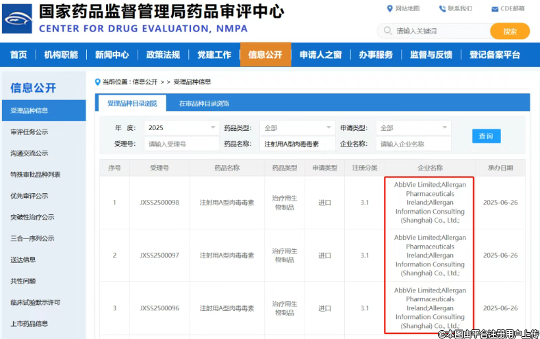 艾爾建美學(xué)保妥適額紋適應(yīng)癥申請(qǐng)獲NMPA受理