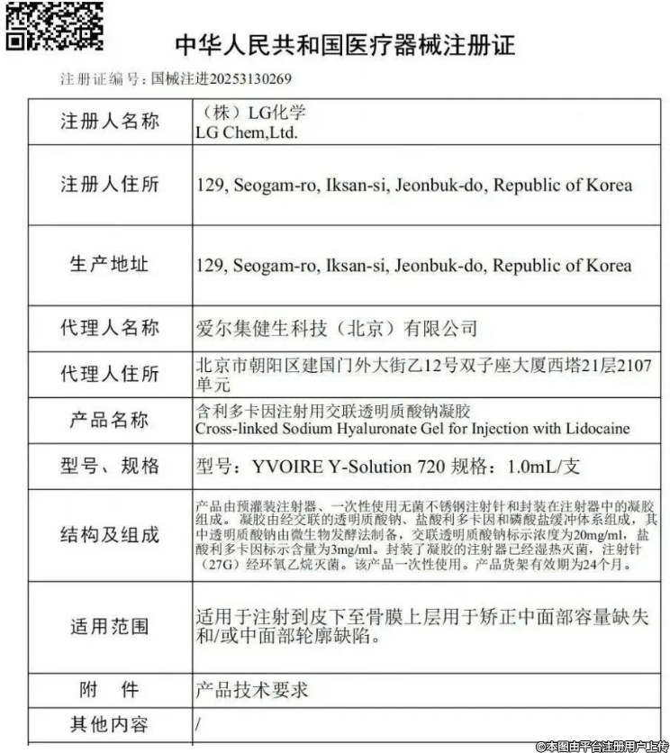 該產(chǎn)品適用于注射至皮下至骨膜上層,用于矯正中面部容量缺失和/或中面部輪廓缺陷,精準(zhǔn)定位于中面部年輕化市場(chǎng)。??其中,LG化學(xué)隸屬于韓國三大集團(tuán)之一——LG,旗下知名玻尿酸品牌「伊婉」在國內(nèi)市場(chǎng)上有重要地位。不過細(xì)看伊婉C、伊婉V、伊婉cp與伊婉致美,適應(yīng)癥都集中在糾正重度鼻唇溝皺紋。